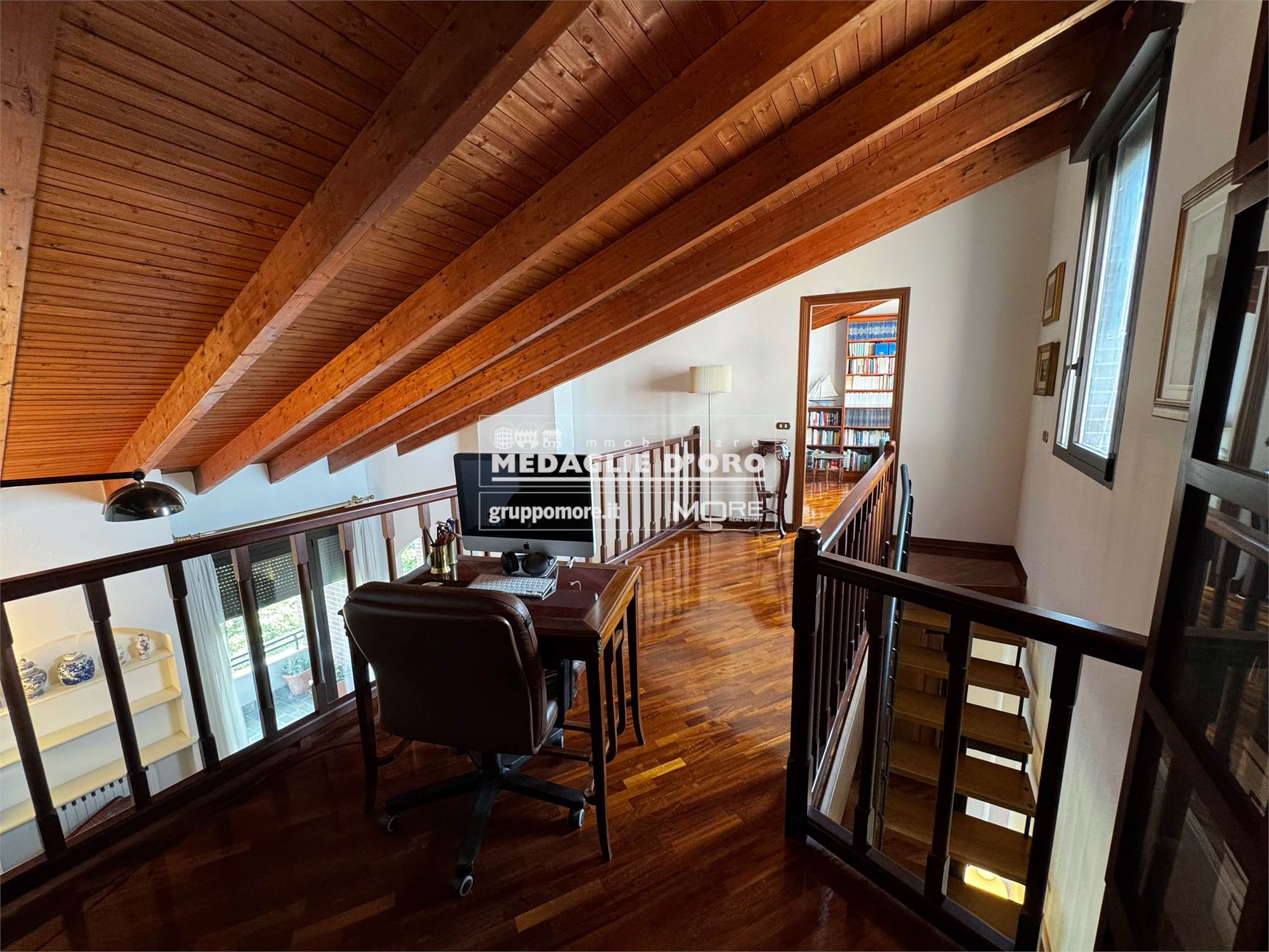 Ottime condizioni, riscaldamento autonomo, aria condizionata in tutti gli ambienti, soffitto a travi a vista e pavimenti pregiati in legno massello in quasi tutti gli ambienti, tapparelle motorizzate, impianto di allarme, cassaforte, allacciamento open fibra.