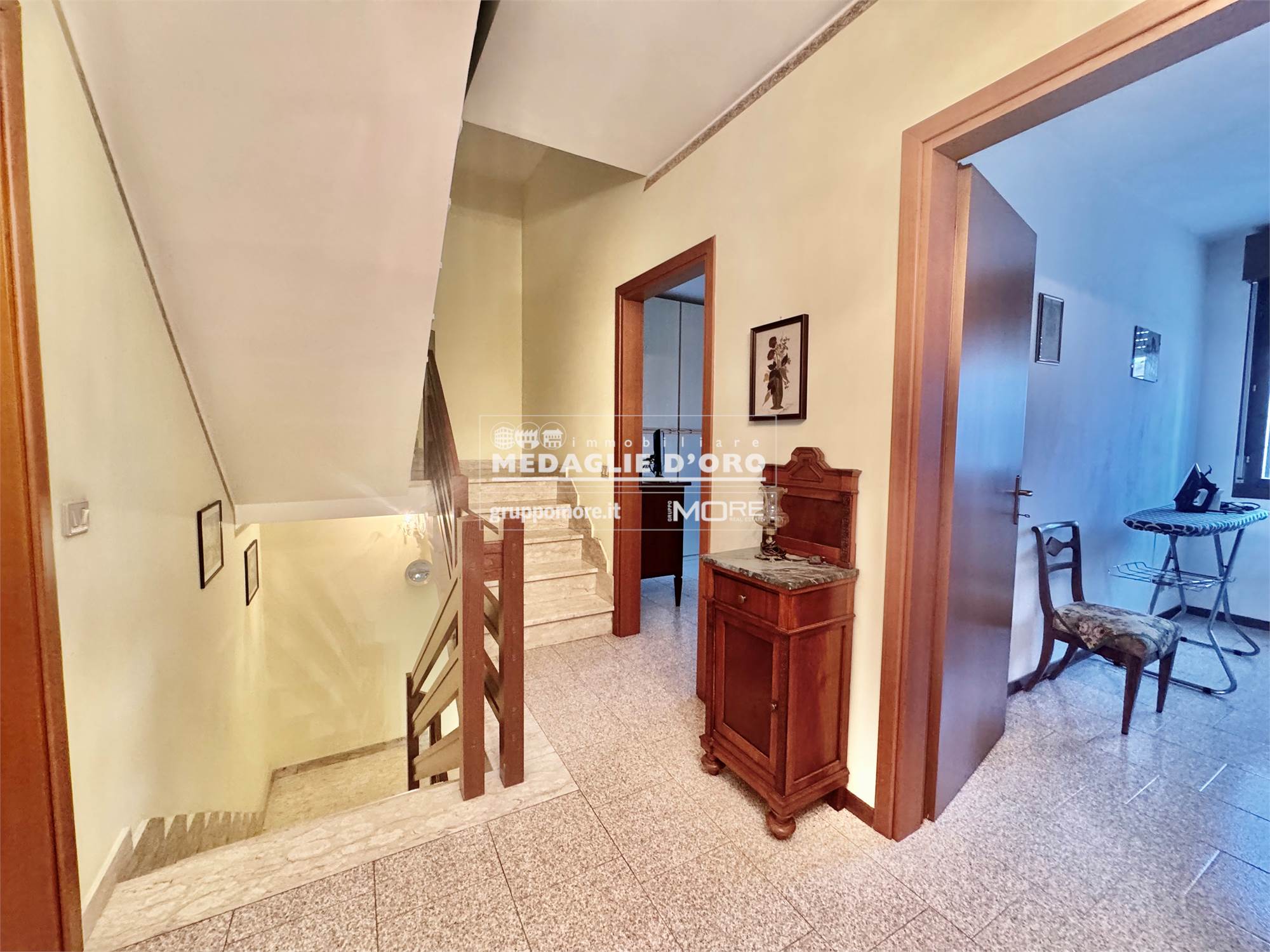 Al primo piano una comoda zona notte con due camere matrimoniali e una camera singola, balcone e bagno.