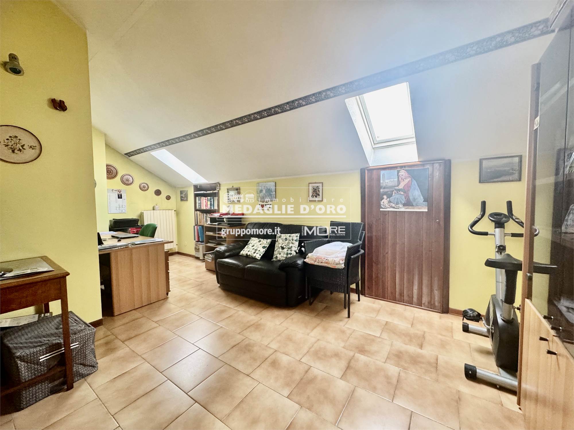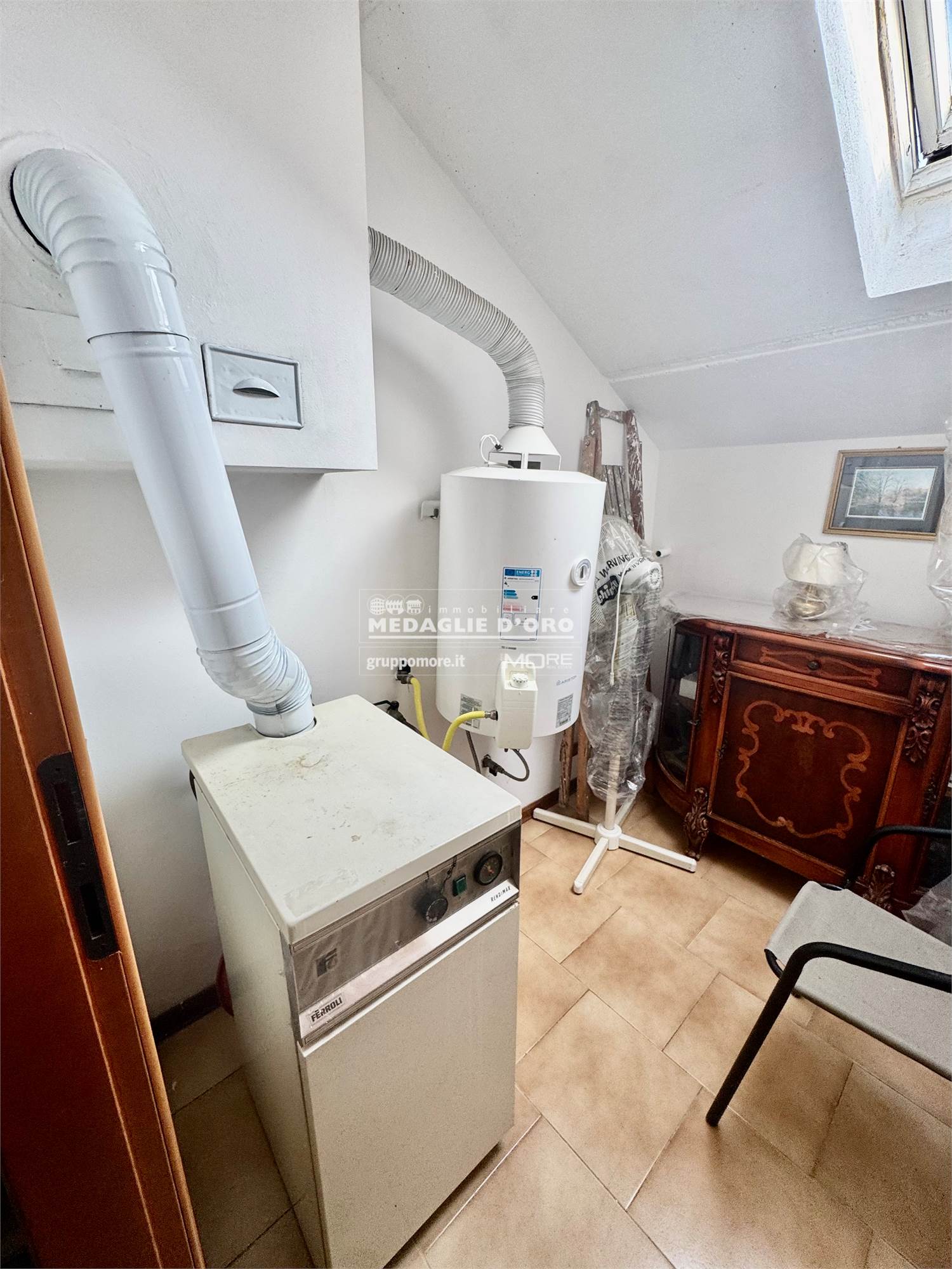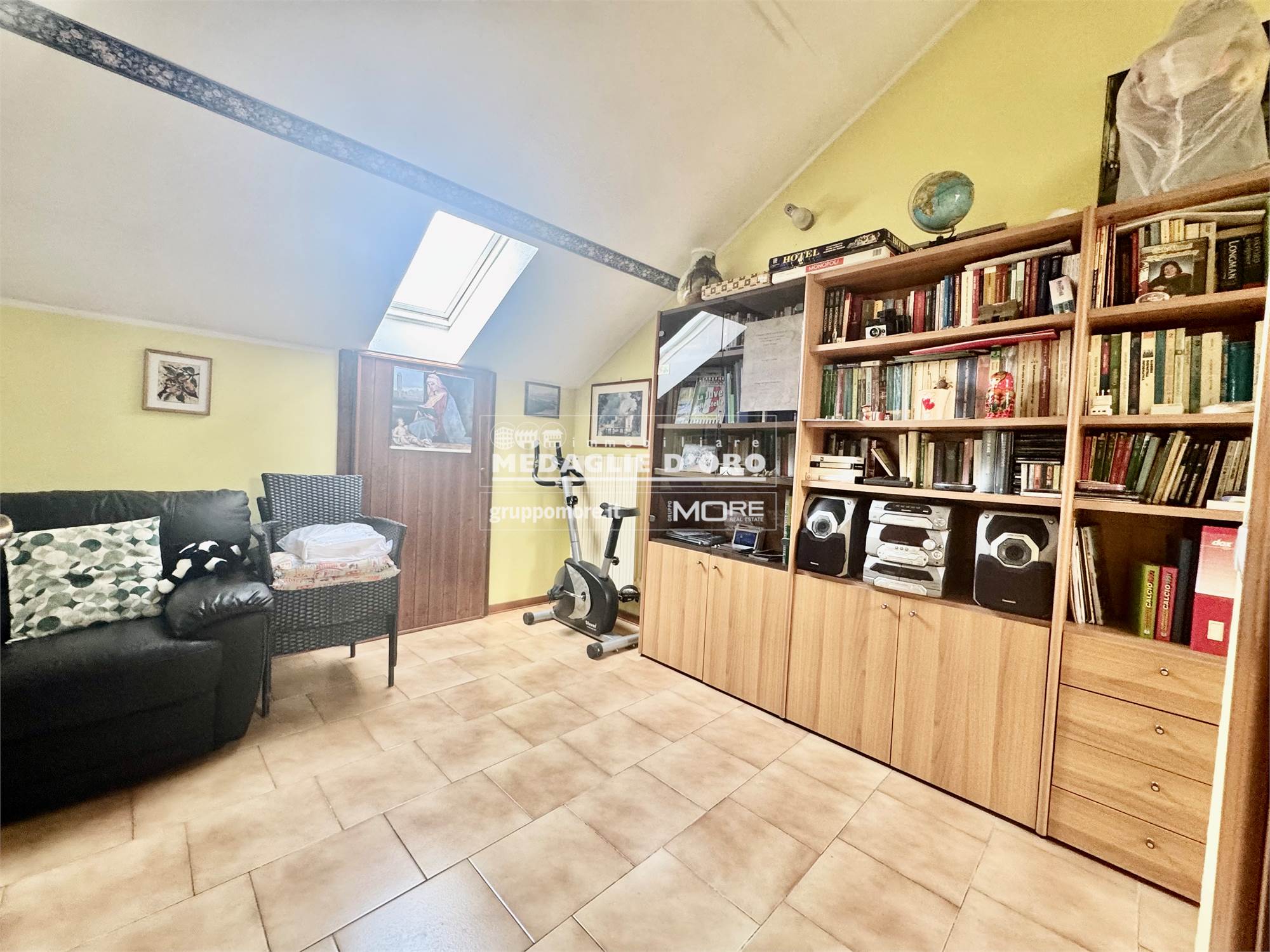 Al secondo piano ampia zona open space mansardata con lavanderia.