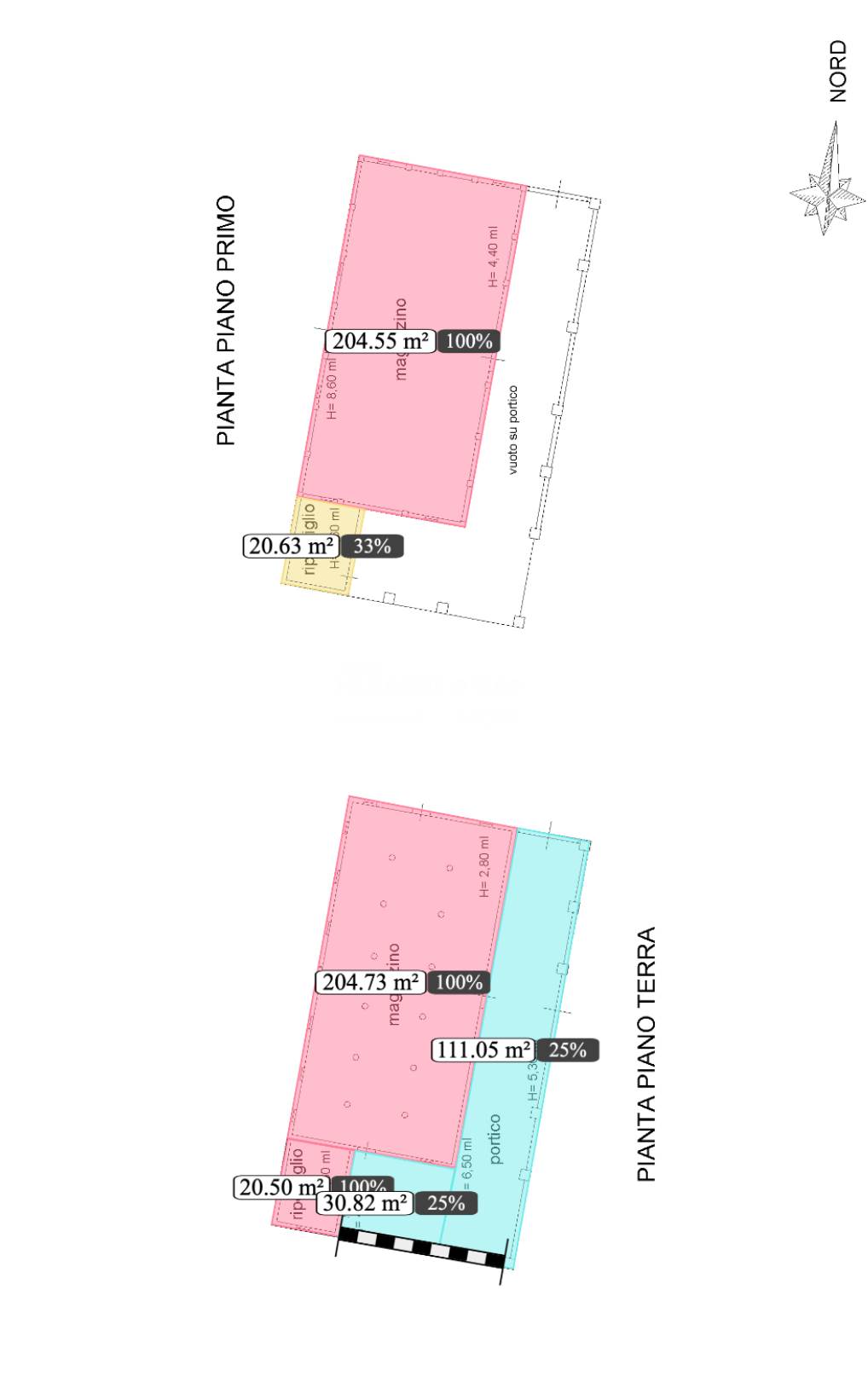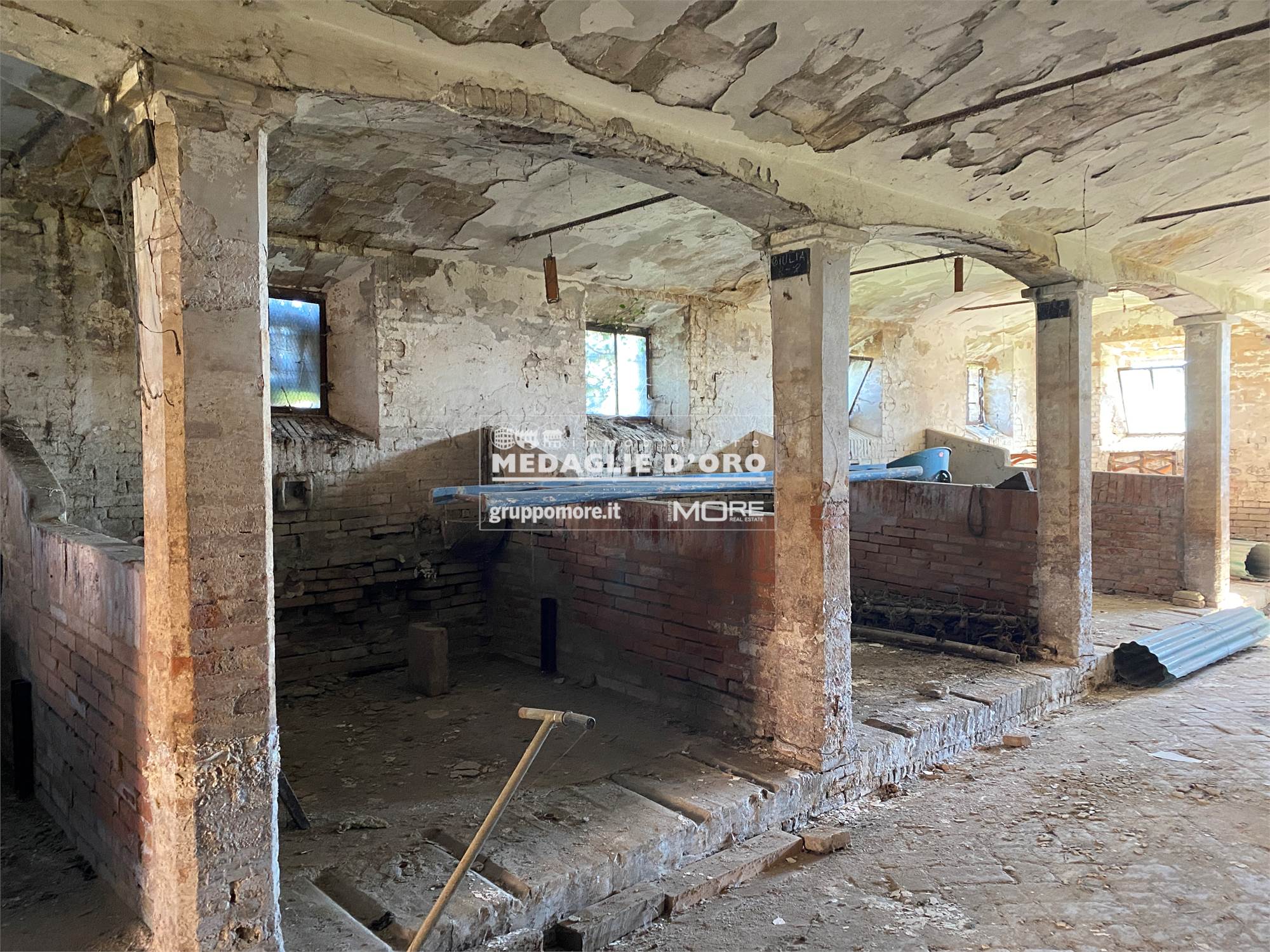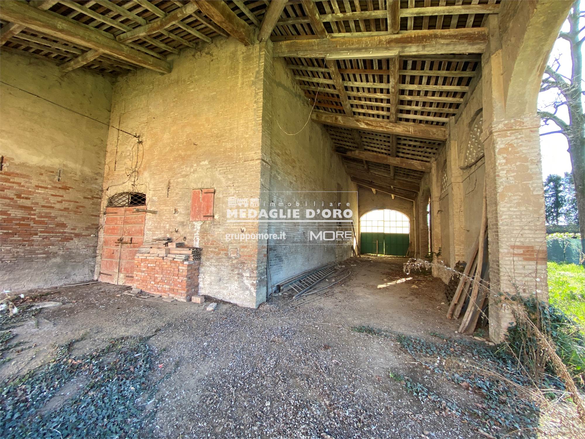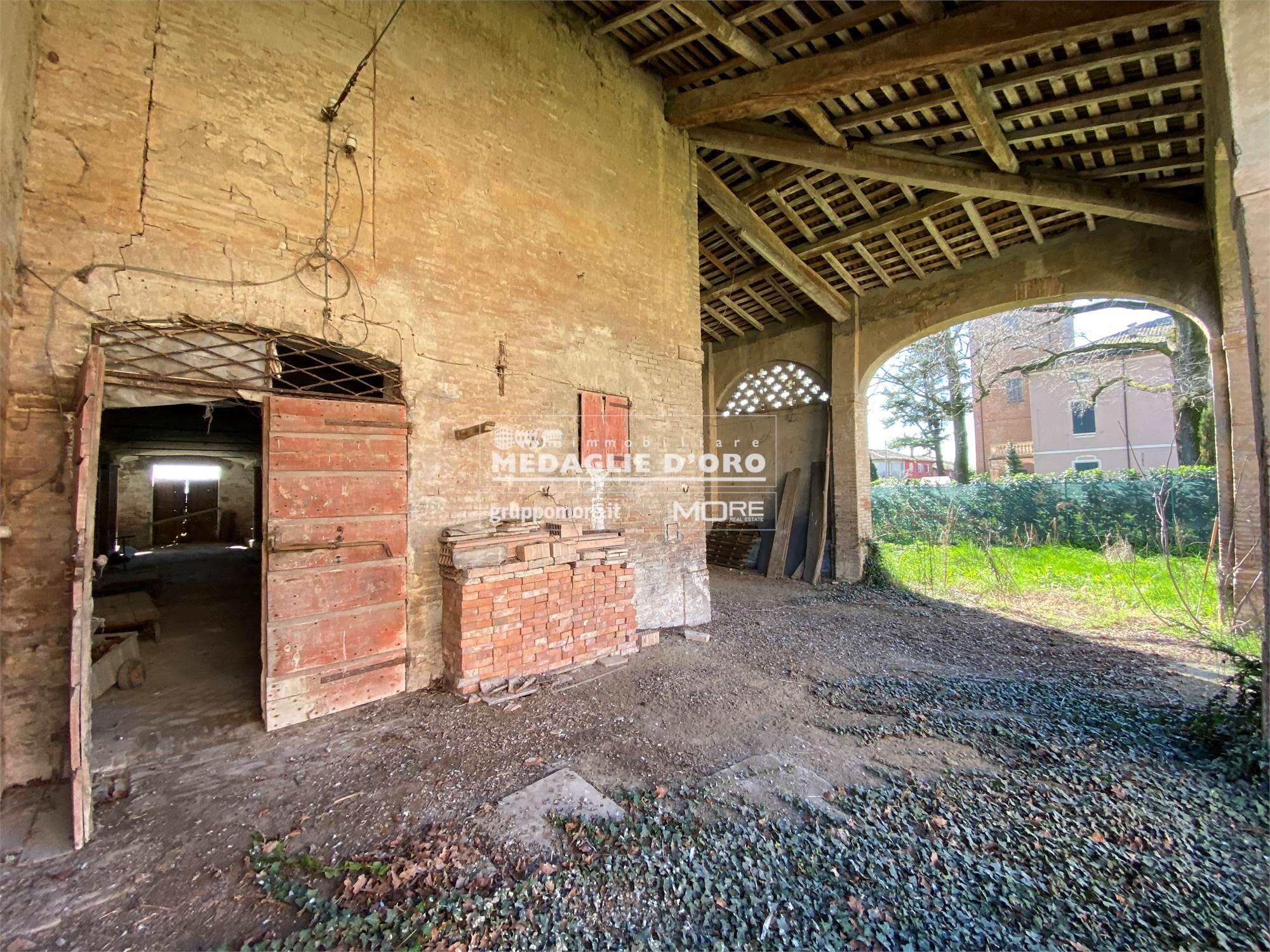 Il secondo edificio, precedentemente adibito a STALLA E FIENILE, ha una superficie totale di circa 570 (200 metri quadri per piano + portico).
