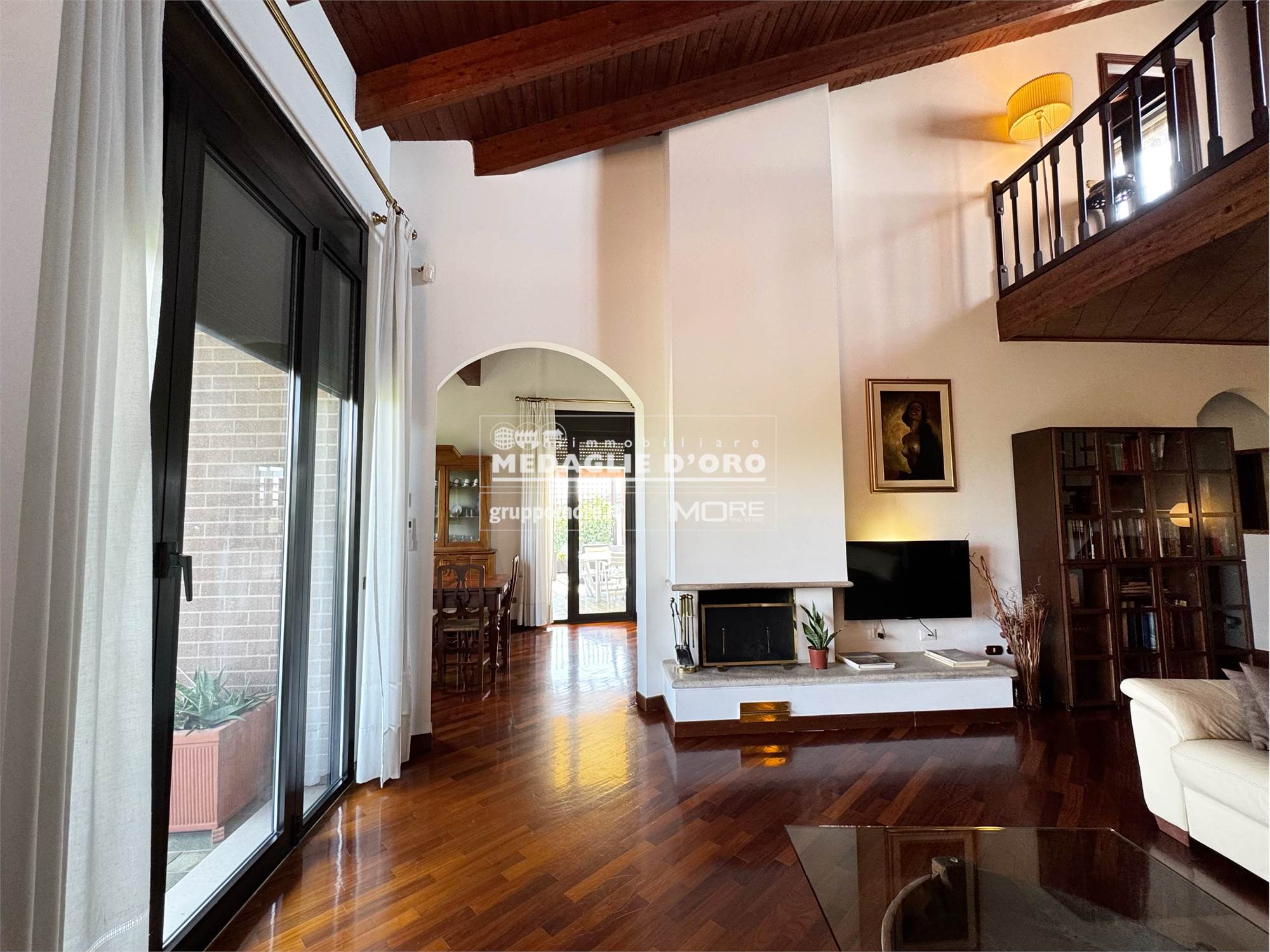 Ottime condizioni, riscaldamento autonomo, aria condizionata in tutti gli ambienti, soffitto a travi a vista e pavimenti pregiati in legno massello in quasi tutti gli ambienti, tapparelle motorizzate, impianto di allarme, cassaforte, allacciamento open fibra.